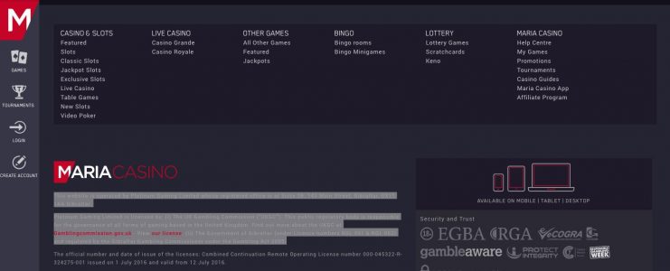 The well-known Unibet Group Plc Casinos company has established a Maria Casino legit website back in 2007. However, if you visit the main page of the casino, you will be pleasantly surprised by the modern interface and availability of progressive slots and games. The gambling platform has significant revenue and a respective fan base, which has been formed over the years. The main reason for such a success is a constant strive for the development and improvement that serves as a core of the ideology of this casino. This website is operated by Platinum Gaming Limited whose registered office is at Suite 2B, 143 Main Street, Gibraltar, GX11 1AA Gibraltar. Platinum Gaming Limited is licensed by (i) The UK Gambling Commission (“UKGC”).